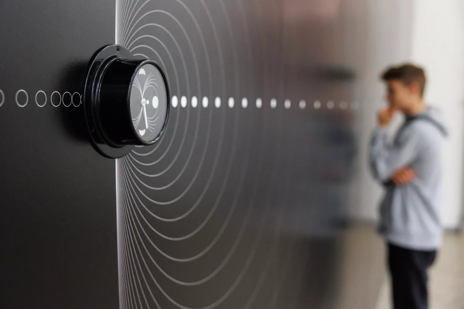 In einer Serie von 28 Aquarellen widmet sich die Künstlerin den Mondphasen. Sie bezieht das Narrativ historischer Forscher*innen mit ein, die glaubten, Ozeane auf dem Mond entdeckt zu haben. Die sogenannten Maria Lunae sind titelgebend für die Serie, die bereits überholte wissenschaftliche Theorien ins Heute transportiert. Die Ausstellung endet mit der Beschwörung der Tiefenzeit, die schliesslich unsere Vorstellungskraft herausfordert: Long Term Lunar Clock besteht aus einer Monduhr, deren Zeiger das Ziffernblatt nach dem Mondzyklus umkreist, sowie einer monumentalen Wandarbeit, welche die sich Monat für Monat für Monat wiederholenden Mondphasen potenziell in die Unendlichkeit projiziert. Selbst wenn wir den Raum und damit die Ausstellung verlassen, gibt die Monduhr immer weiter den Takt an.