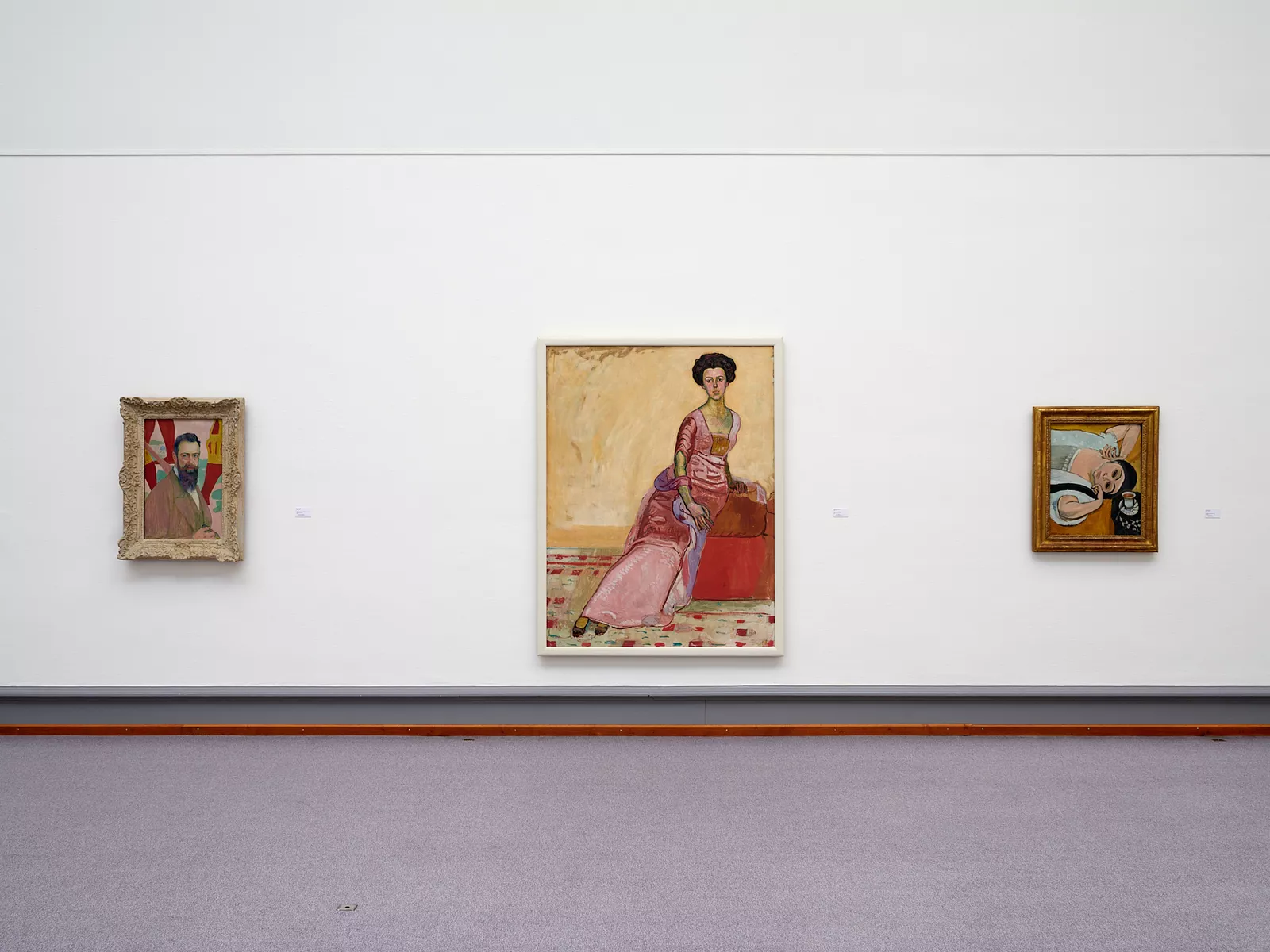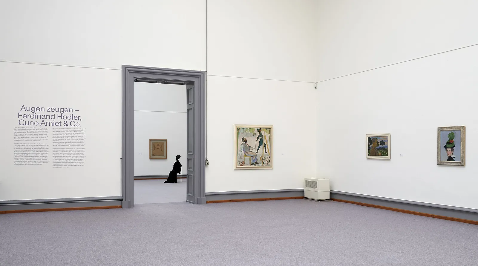 Eine besondere Werkgruppe stellen die Bildnisse von Ferdinand Hodler (1853–1918) und Cuno Amiet (1868–1961) dar. Die beiden prominenten Vertreter der figurativen Schweizer Moderne lernten bei der Eröffnung des Kunstmuseums 1902 die junge Solothurnerin Gertrud Dübi-Müller kennen. Sie wurde von Amiet und Hodler in den Folgejahren als stilvolles Modell und respektierte Mäzenin um die Wette portraitiert. Die unterschiedlichen Bildnisse – von Gertrud, von sich selbst, voneinander, von anderen Vertrauten – lassen die einstige Nähe zwischen den Malern und ihre spätere Entzweiung nachzeichnen. Während Hodlers Linien auf die Verdichtung eines charakteristischen Ausdrucks zulaufen, leben Amiets Figuren zunehmend von abstrakten Farb- und Bildkompositionen.