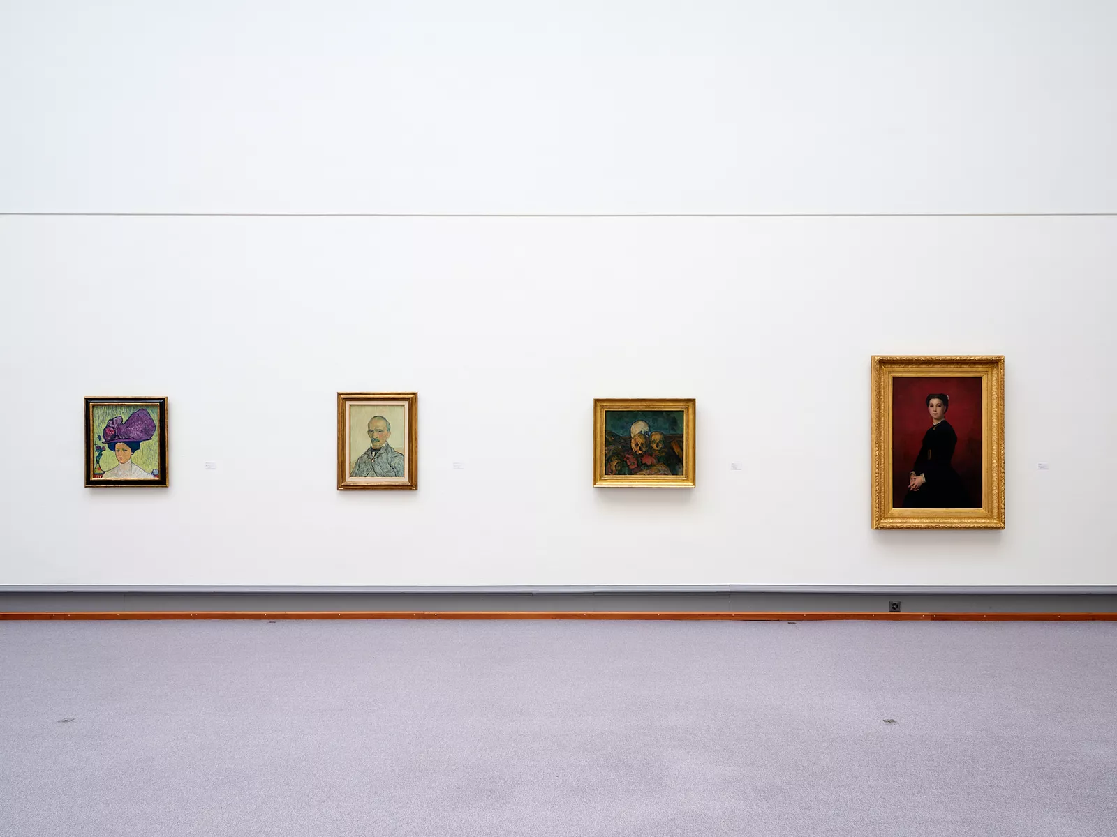 Farbenstarke Hintergründe zeichnen die Auftragsportraits von Albert Anker (1831–1910) und Ottilie W. Roederstein (1859–1937) aus. Sie bleiben dem Realismus des vorigen Jahrhunderts verbunden, von dem sich die jüngere Generation abzusetzen suchte. So bietet die kleine Sammlungspräsentation auch Einblicke in die (Kunst-)Geschichte des Portraits vom ausgehenden 19. und beginnenden 20. Jahrhundert. Sie endet mit dem Selbstbildnis des Schweizer Surrealisten Otto Tschumi (1904–1985), das die anhaltende Faszination am Genre auf den Punkt bringt: Wie lässt sich das Innere eines Menschen auf ein Äusseres kartieren, und vice versa? Welche Projektionen der Betrachtenden sind mit im Spiel?