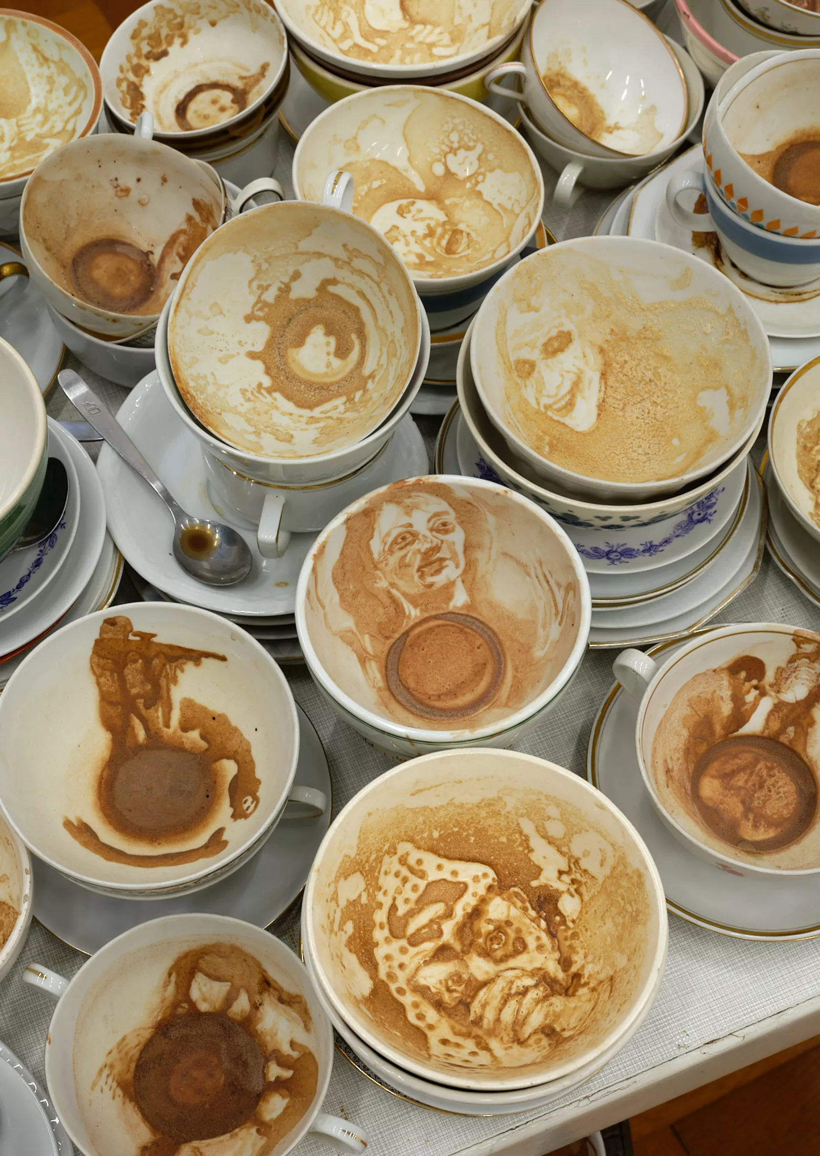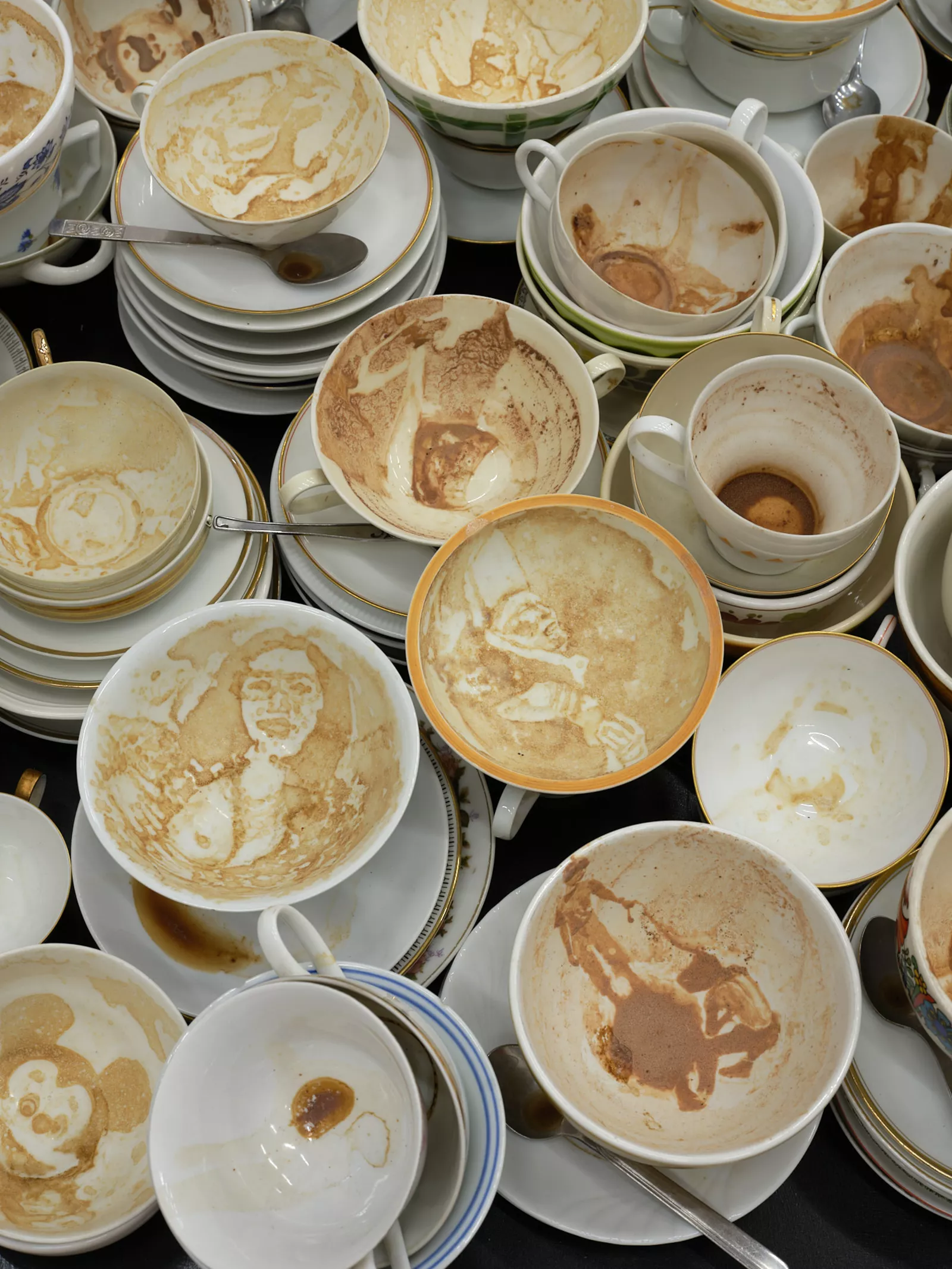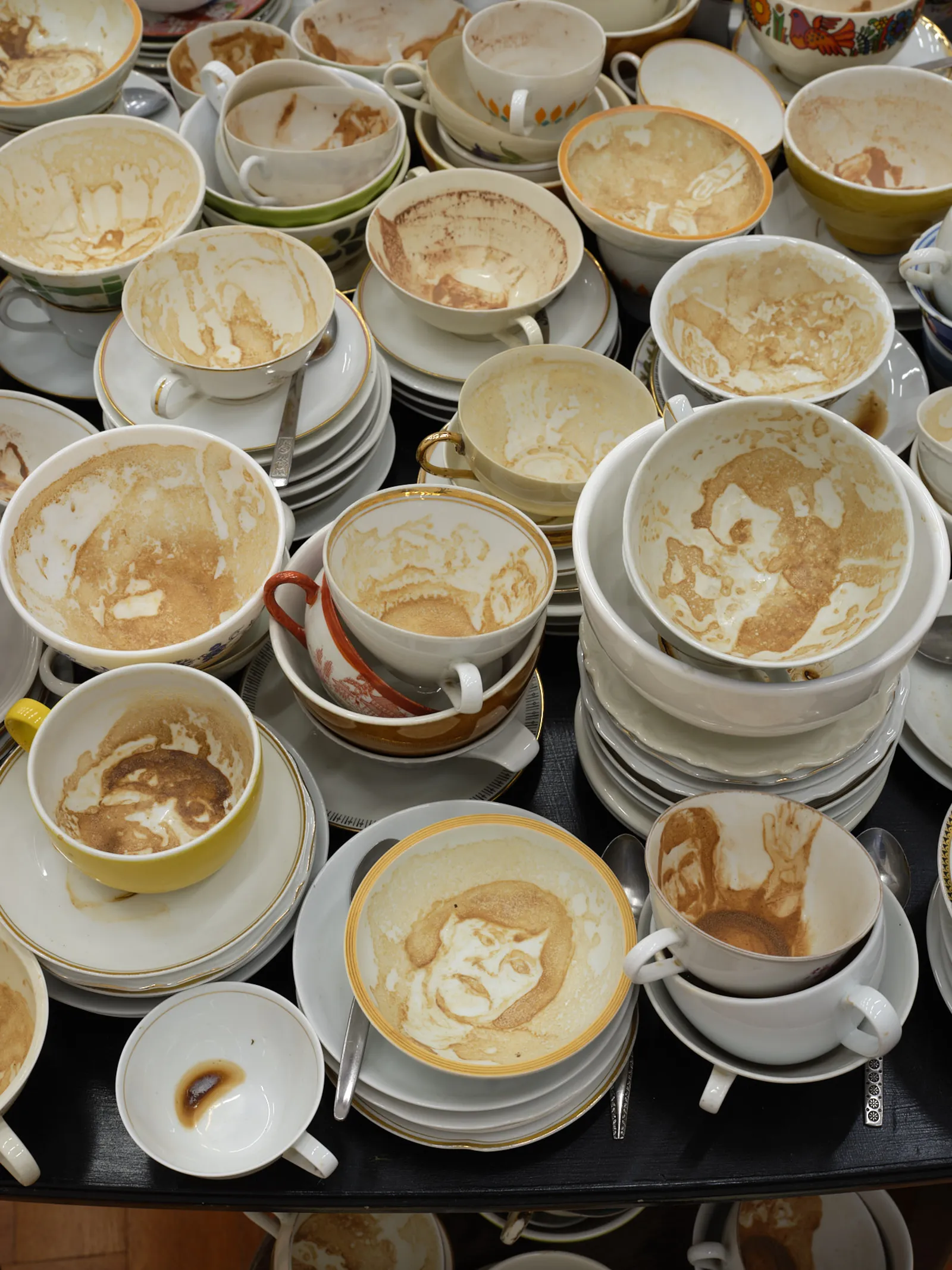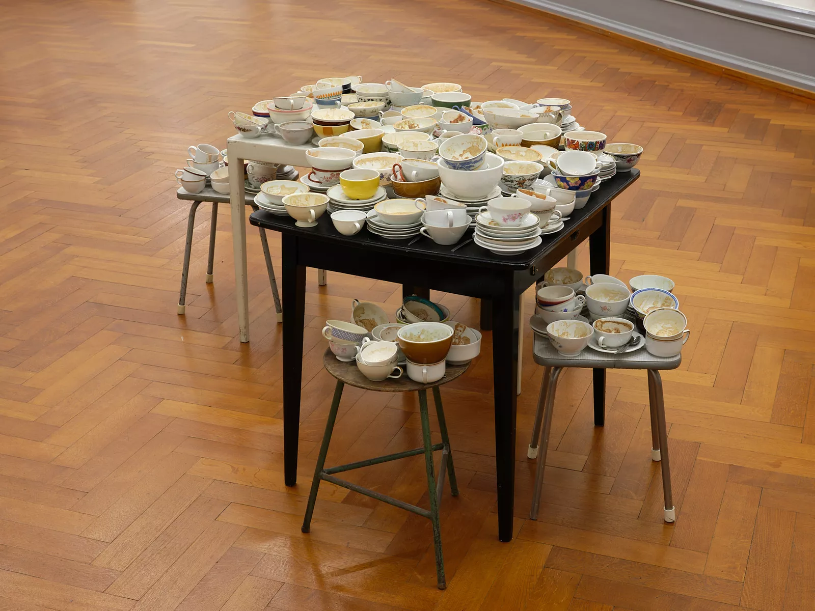 Eines Tages, während ihres Morgenrituals, überkommt Isabelle Krieg ein irritierendes Gefühl: Die Künstlerin wird sich bewusst, dass sich neben dem frisch gebrühten Kaffee und der Zeitungslektüre auch die Konsumation von Berichterstattungen über den aktuellen zweiten Irakkrieg in ihre Routine eingeschlichen hatte – und damit Nachrichten, die sie weitgehend wütend machen. In Reaktion darauf beginnt Krieg ebenjene Zeitungsbilder selbst mit Kaffeeschaum und Kakao in die Tassen zu malen und lässt den Stapel an Geschirr weiter sich auf Tischen und Stühlen auftürmen. Unter dem Titel «Unerledigt» verbindet die installative Arbeit damit das persönliche Empfinden der Künstlerin im Spiegel politischer Ereignisse. In drei Teile unterteilt, umfasst das in der Sammlung des Kunstmuseums Solothurn vorhandene Werk die Zeitspanne von 2003 bis 2008.